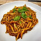 Fusilloni artesanales en salsa de calabacines y camarones (Calabacines verdes, camarones jumbo, tomatitos frescos, ajo, perejil, aceite extra virgen de oliva italiana). Vino chardonnay, cebollines verdes , albahaca, queso parmesano. Ají picante al gusto (definir si es poco, mucho o no picante).